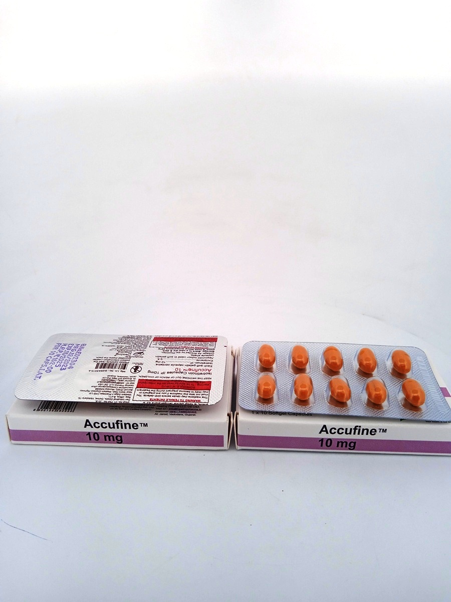 Usage Instructions: Take one Accufine 10 mg Capsule daily with food. Follow your healthcare provider’s instructions carefully. Avoid taking vitamin A supplements while using Accufine 10 mg Capsules, as it may increase the risk of side effects.