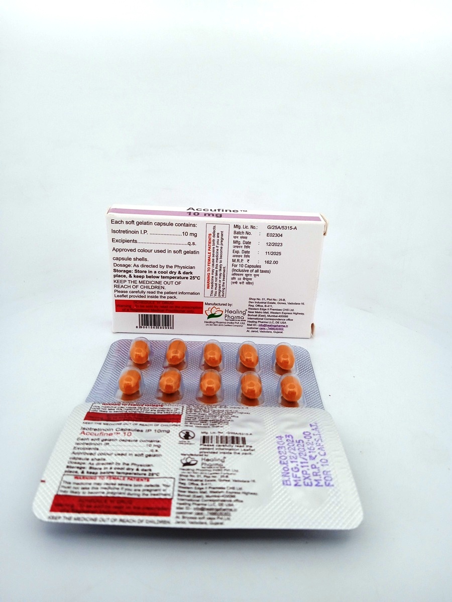 Expert Advice: Dermatologists recommend close monitoring and regular follow-up appointments while using Accufine 10 mg Capsules to assess treatment progress and manage potential side effects. It’s crucial to use sunscreen and moisturize daily to minimize dryness and sun sensitivity.