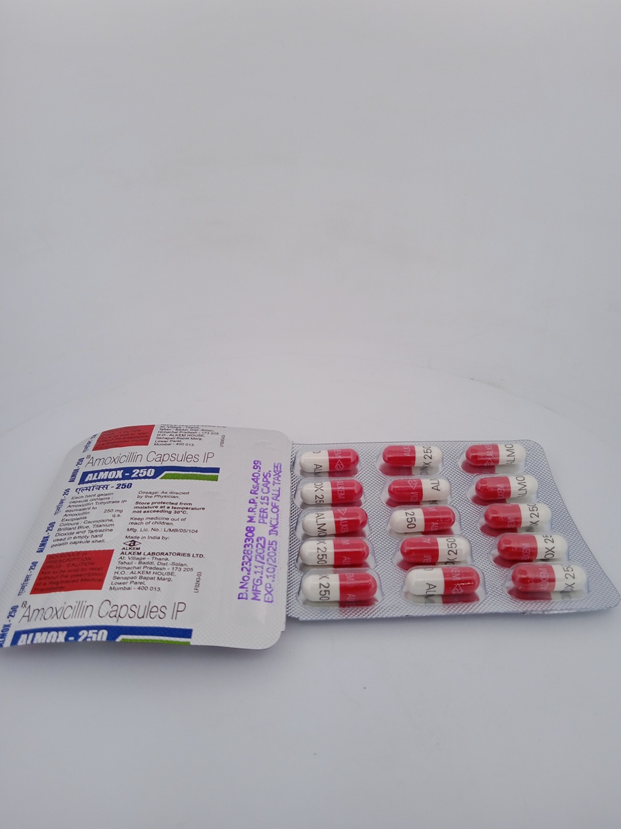 Take ALMOX 250mg Capsules as directed by your healthcare provider. Typically, the dosage is one capsule every 8 hours for 7-10 days, depending on the severity of the infection. Always complete the full course of medication, even if symptoms improve.