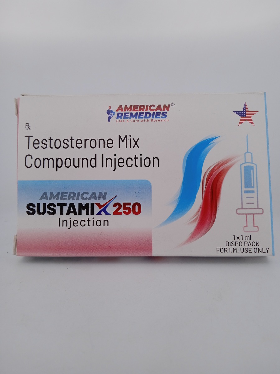 AMERICAN SUSTAMIX 250 MG is a testosterone replacement therapy (TRT) injection designed for men with low testosterone levels. This formulation contains a blend of testosterone esters that provide a steady release of testosterone, ensuring consistent therapeutic effects. It helps combat symptoms like fatigue, reduced libido, and muscle weakness. AMERICAN SUSTAMIX is typically administered every 2 to 4 weeks, depending on individual medical needs, and is known for its efficacy and long-lasting effects.
