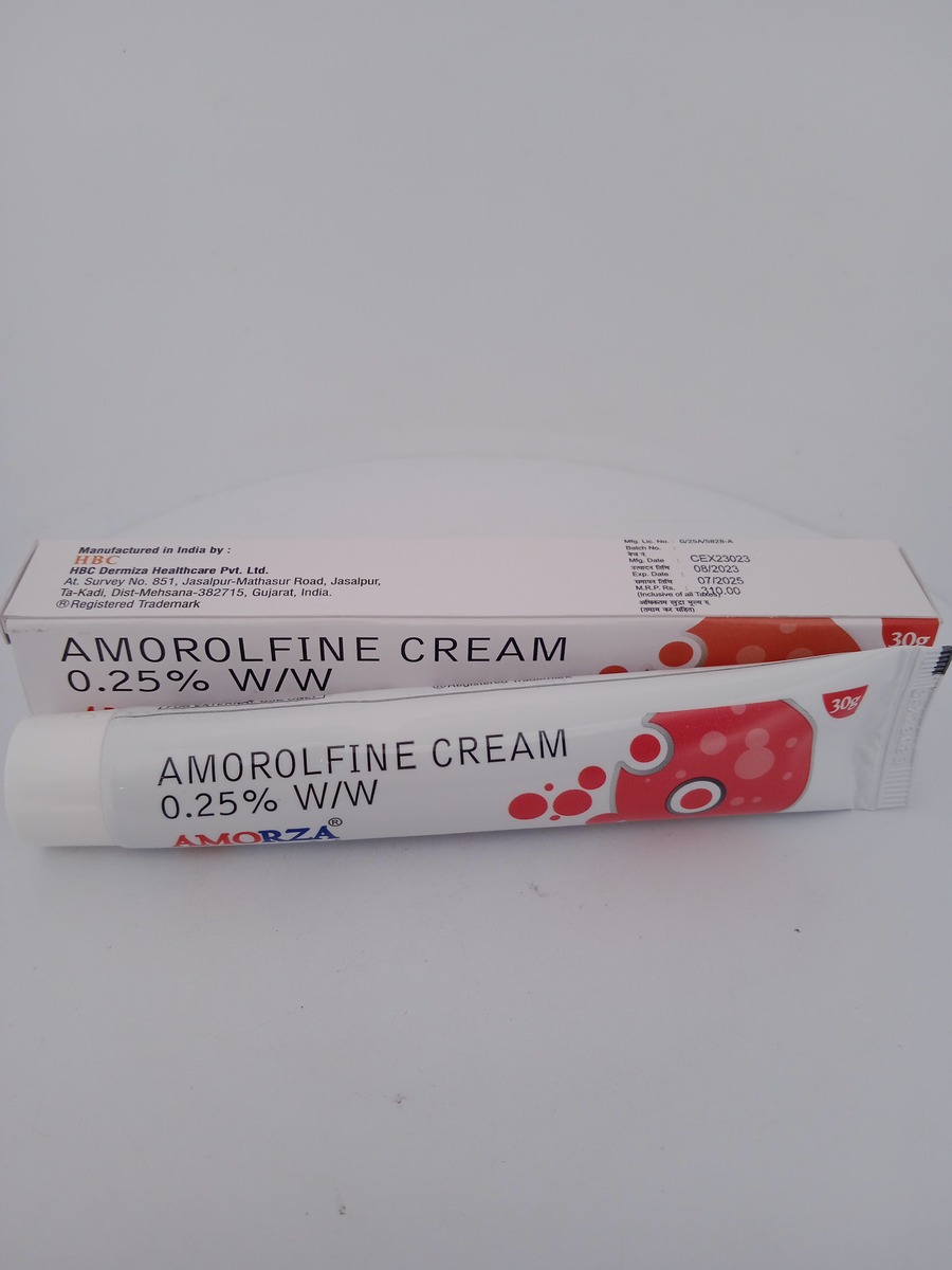 AMORZA 0.25% Cream contains Amorolfine, which disrupts the synthesis of ergosterol, a key component of the fungal cell membrane. This disruption weakens the cell membrane, causing cell death and preventing further fungal growth. This targeted action ensures effective eradication of the infection.