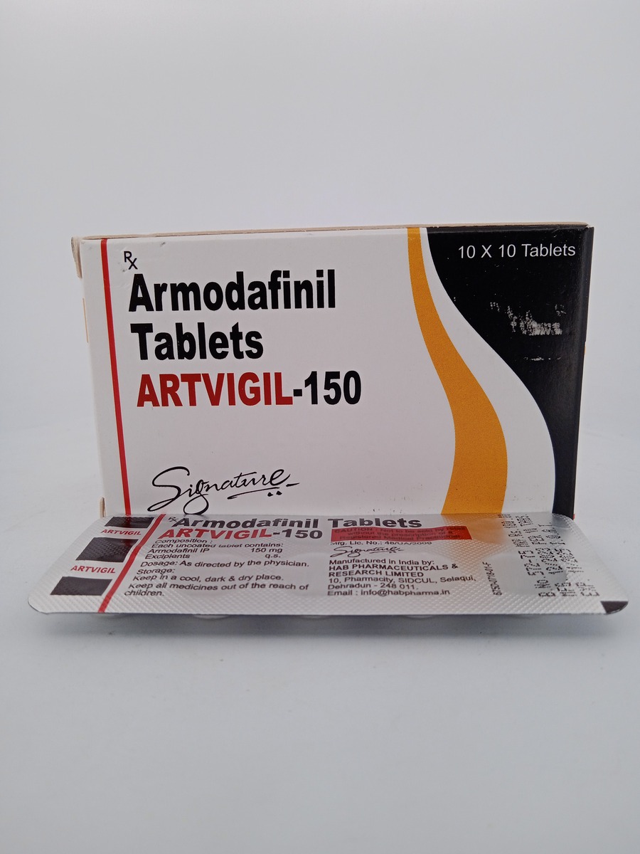 Usage Instructions: Take one Artvigil 150 mg tablet orally in the morning, with or without food, to enhance wakefulness and focus throughout the day. Avoid taking it late in the day to prevent sleep disturbances.