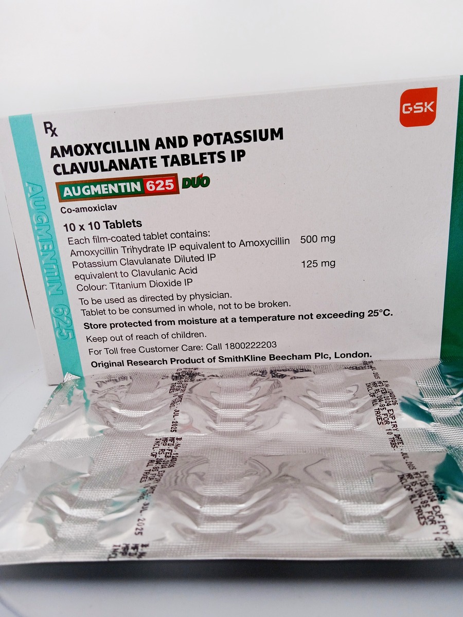 AUGMENTIN 625 MG DUO combines amoxicillin and clavulanic acid in a powerful formulation to fight bacterial infections. Amoxicillin, a broad-spectrum penicillin-type antibiotic, works by inhibiting bacterial cell wall synthesis, while clavulanic acid helps overcome bacterial resistance. This duo provides comprehensive infection control, making AUGMENTIN 625 MG DUO a reliable choice for effective treatment.