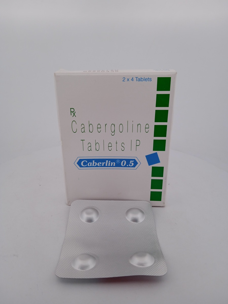 CABERLIN 0.5 MG contains Cabergoline, a dopamine agonist that effectively reduces high prolactin levels in the body. Elevated prolactin can cause various problems, such as infertility, irregular menstrual cycles, and unwanted milk production. CABERLIN 0.5 MG helps manage these symptoms by inhibiting excess prolactin production from the pituitary gland. It is also used to treat prolactinomas, benign tumors that increase prolactin secretion. Regular use of this medication helps restore hormonal balance and improve reproductive health.