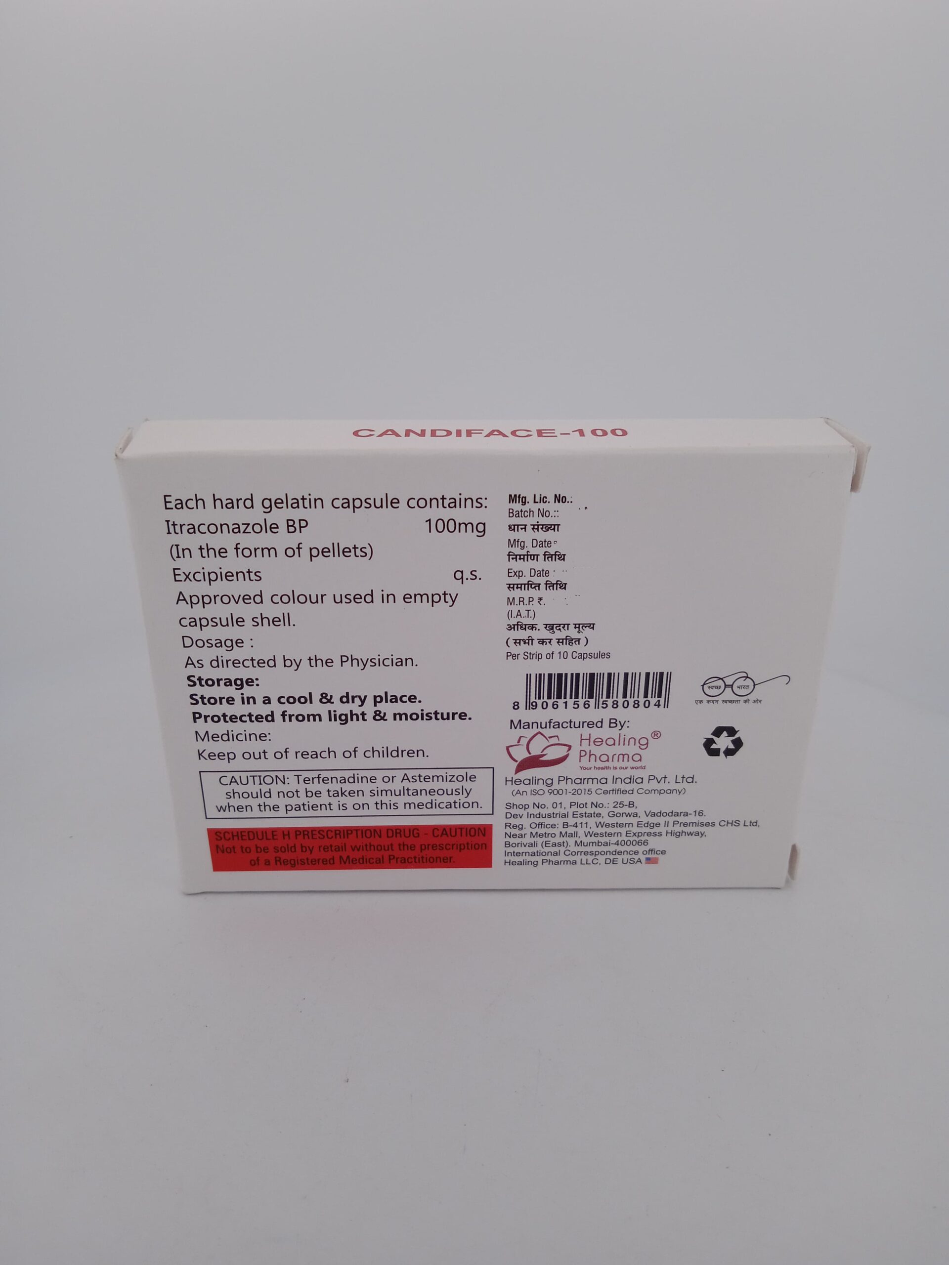 CANDIFACE 100 MG is an antifungal drug used to treat fungal infections such as candidiasis, athlete’s foot, ringworm, and infections of the nails and internal organs. It acts by disrupting the cell membrane of fungi, causing them to die off and preventing their further spread. This medication provides targeted relief from stubborn fungal infections, helping patients regain their health quickly. Suitable for both topical and systemic infections, CANDIFACE 100 MG is a reliable choice for comprehensive fungal treatment.