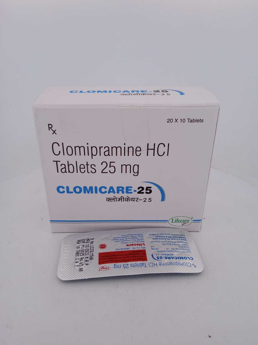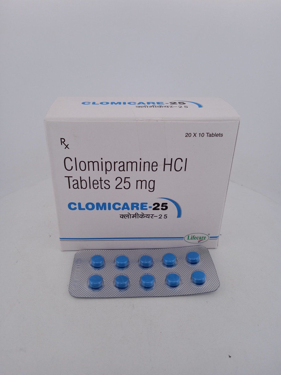 CLOMICARE 25 MG, featuring Clomipramine, is a medication primarily used to treat major depressive disorder and OCD. It helps alleviate symptoms such as low mood, anxiety, and persistent unwanted thoughts or repetitive behaviors seen in OCD. By acting on the serotonin and norepinephrine neurotransmitters in the brain, CLOMICARE helps stabilize mood and reduce obsessive and compulsive behaviors.
