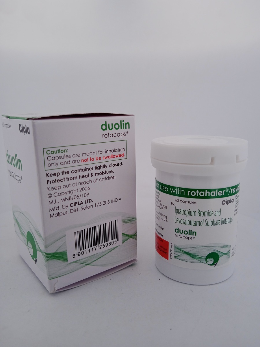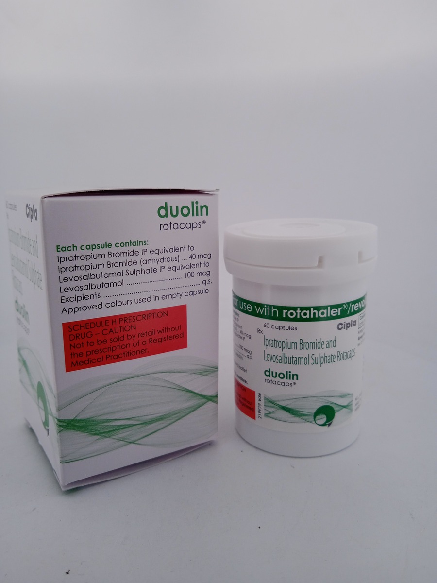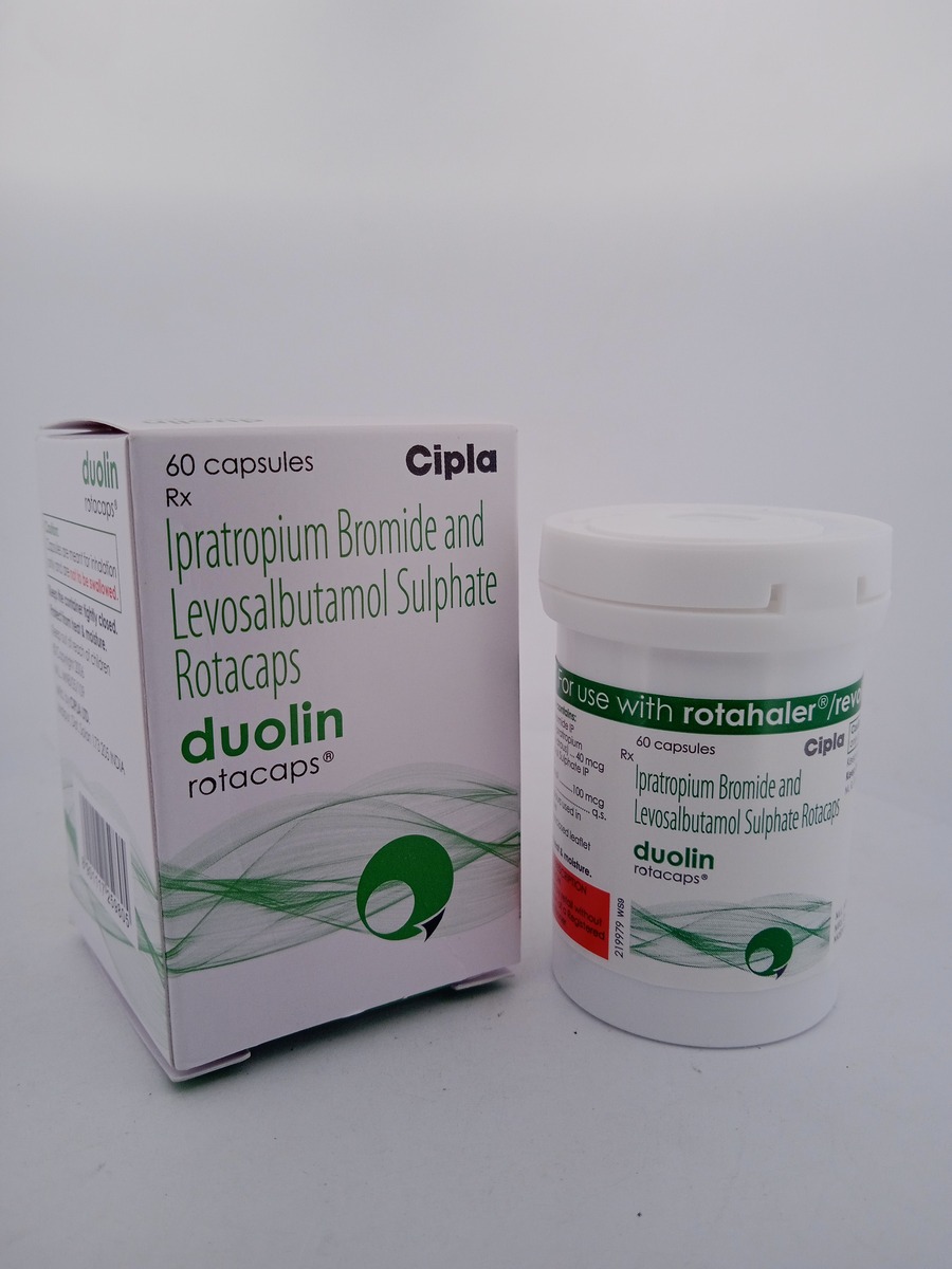 DUOLIN Rotacaps combine Ipratropium Bromide and Levosalbutamol, offering a comprehensive treatment approach for asthma and COPD. The combination ensures rapid bronchodilation, providing relief from acute respiratory symptoms and improving lung function.