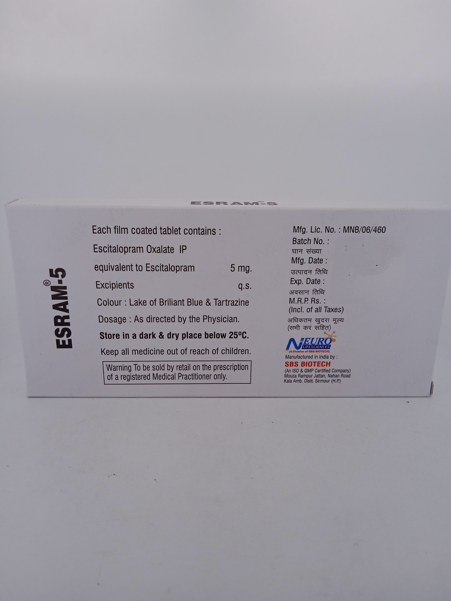 Dosage: Take ESRAM 5 MG as prescribed by your healthcare provider, usually once daily.