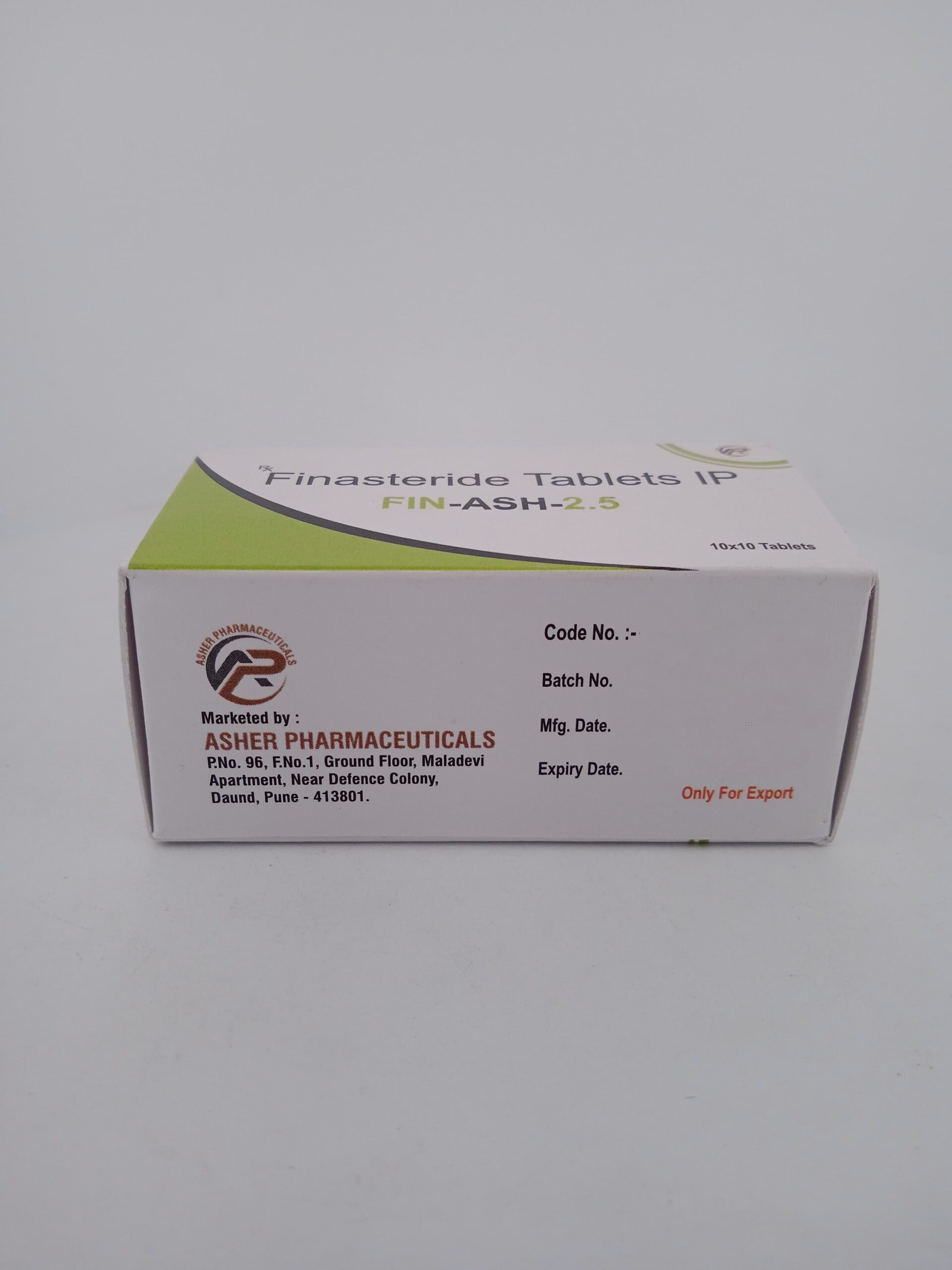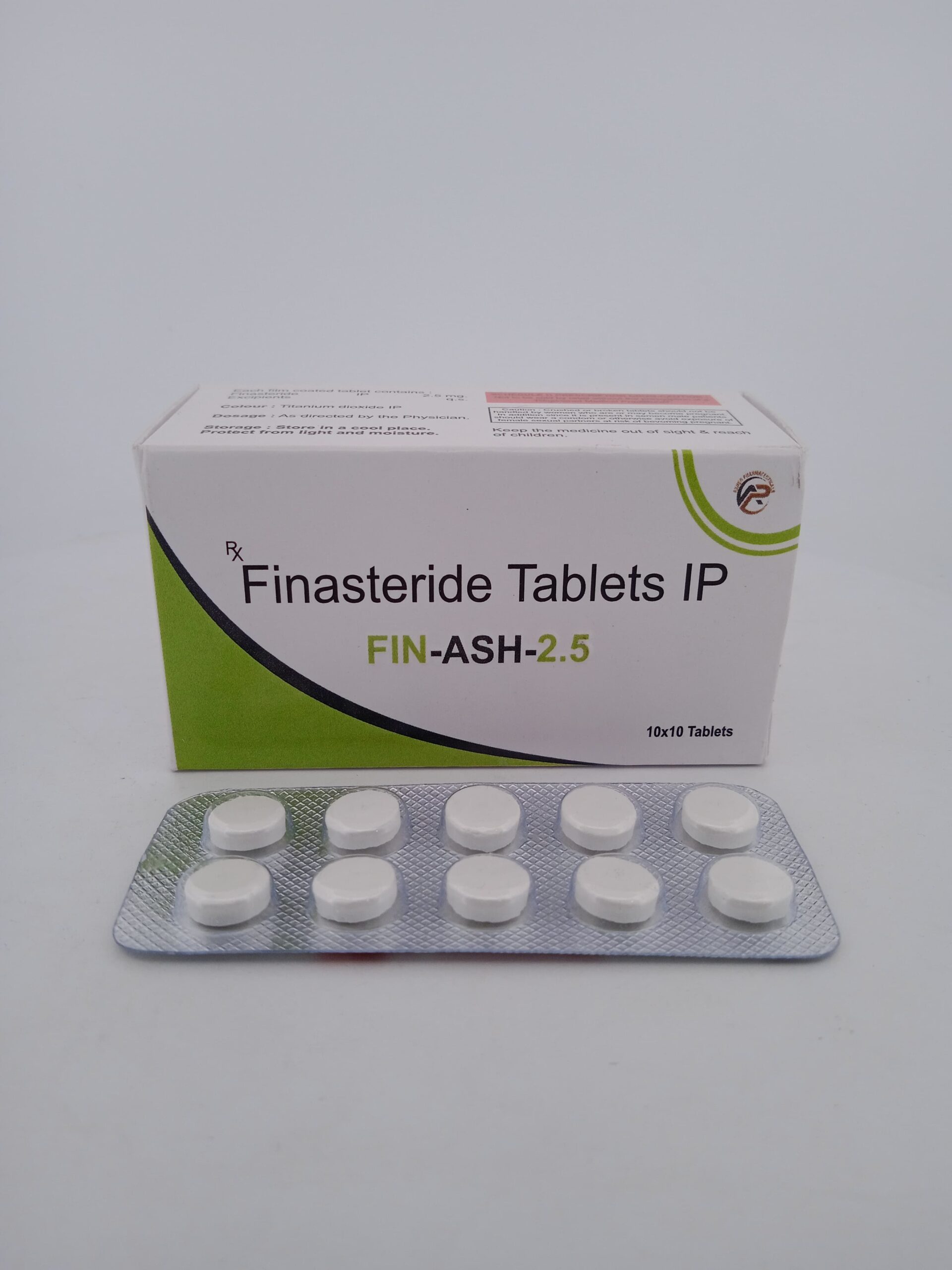 FIN-ASH 2.5 MG is a daily oral medication formulated with Finasteride, a 5-alpha reductase inhibitor. It effectively promotes hair regrowth by reducing DHT levels, the primary cause of male pattern baldness. Additionally, it alleviates symptoms of BPH, such as difficulty urinating, by shrinking the enlarged prostate gland. This dual-purpose medication is widely used and well-tolerated under medical supervision.