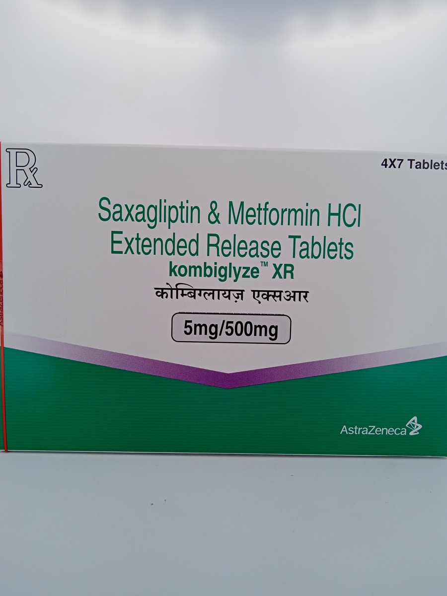 KOMBIGLYZE XR 5MG/500MG combines Saxagliptin and Metformin in a single extended-release tablet. Saxagliptin, a DPP-4 inhibitor, enhances insulin secretion and reduces glucose production. Metformin, a biguanide, improves insulin sensitivity and reduces liver glucose output. Together, they provide a comprehensive approach to managing blood glucose levels in type 2 diabetes. The extended-release formulation allows for once-daily dosing, promoting consistent glycemic control and reducing the need for multiple medications.