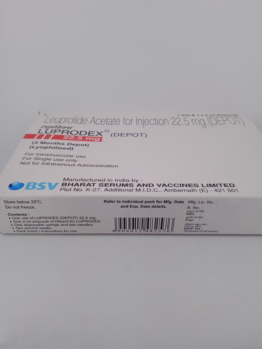 LUPRODEX DEPOT 22.5 MG contains Leuprorelin Acetate, a synthetic hormone analog used for treating several hormone-related conditions. It is commonly prescribed for managing prostate cancer by suppressing testosterone levels. In women, it treats endometriosis and uterine fibroids by reducing estrogen production. Additionally, it helps manage cases of premature puberty by delaying early sexual development. The long-acting formulation ensures continuous symptom relief over extended periods.