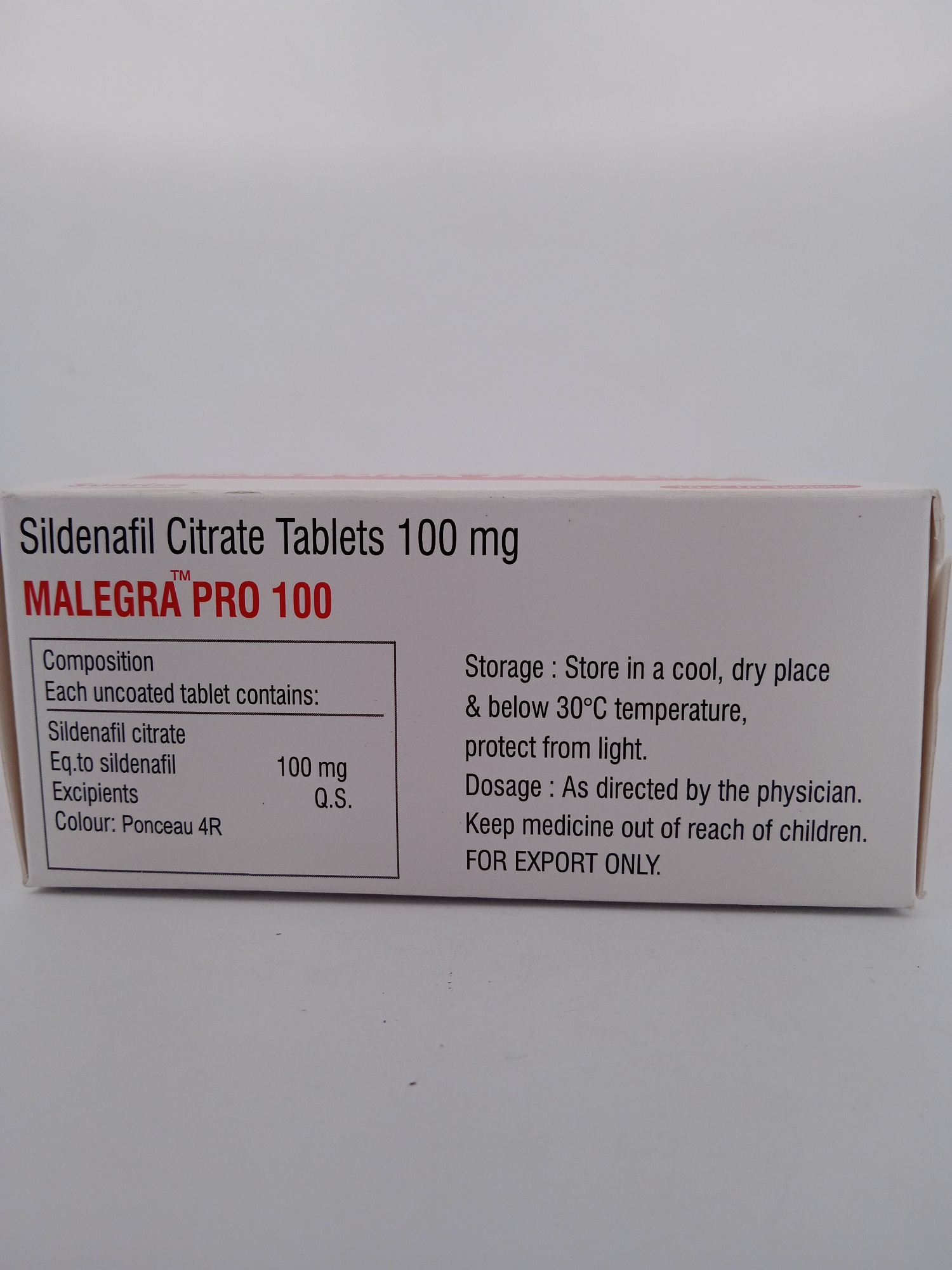Storage Conditions: Store Malegra Pro 100 mg in a cool, dry place away from sunlight and moisture. Keep out of reach of children and pets.