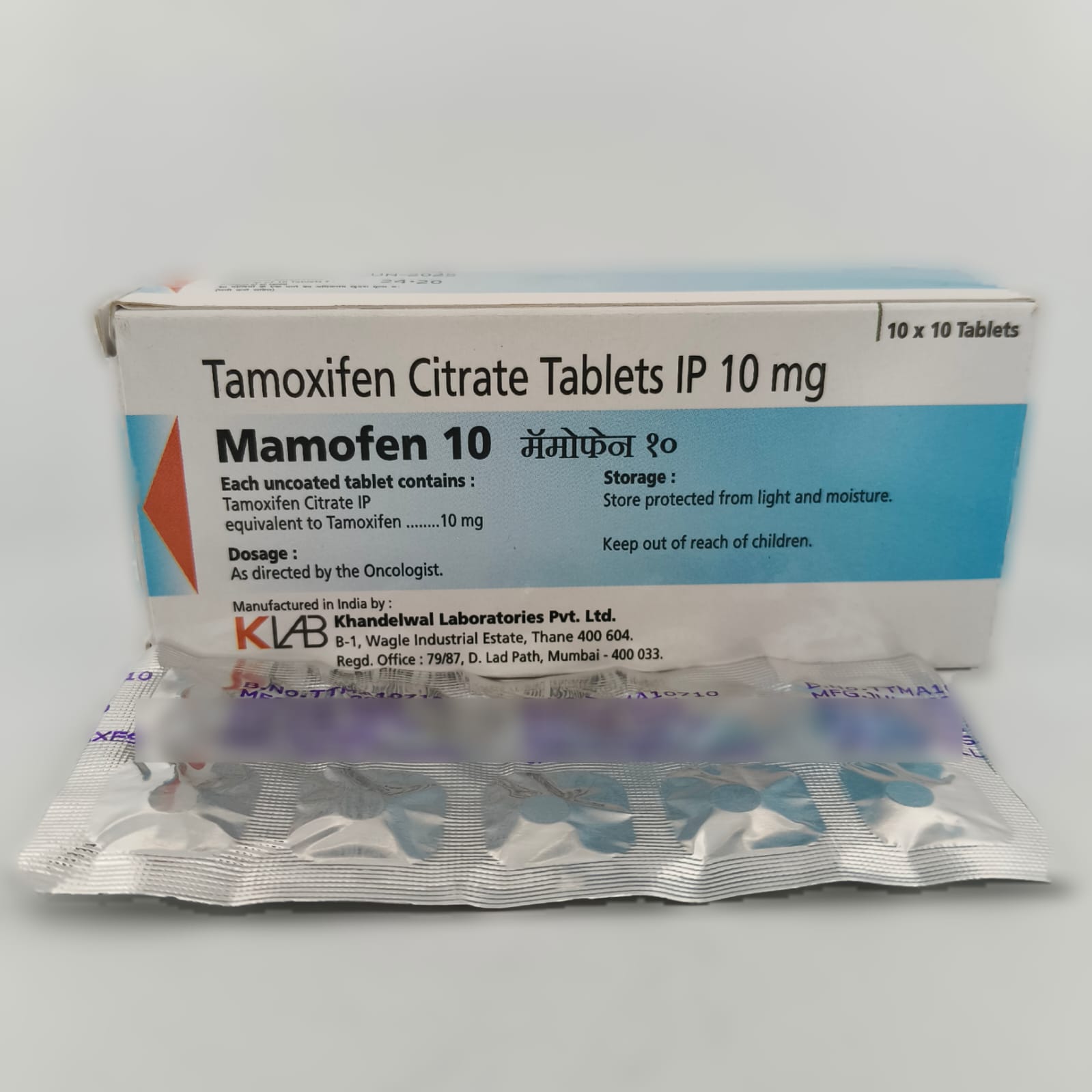 MAMOFEN 10 MG contains Tamoxifen, a selective estrogen receptor modulator (SERM) used in the treatment and prevention of breast cancer. By blocking estrogen receptors, Tamoxifen inhibits the growth of estrogen-dependent tumors. This medication is a cornerstone in breast cancer therapy, providing long-term benefits in reducing tumor size and preventing recurrence. Each tablet is formulated to ensure optimal absorption and efficacy.