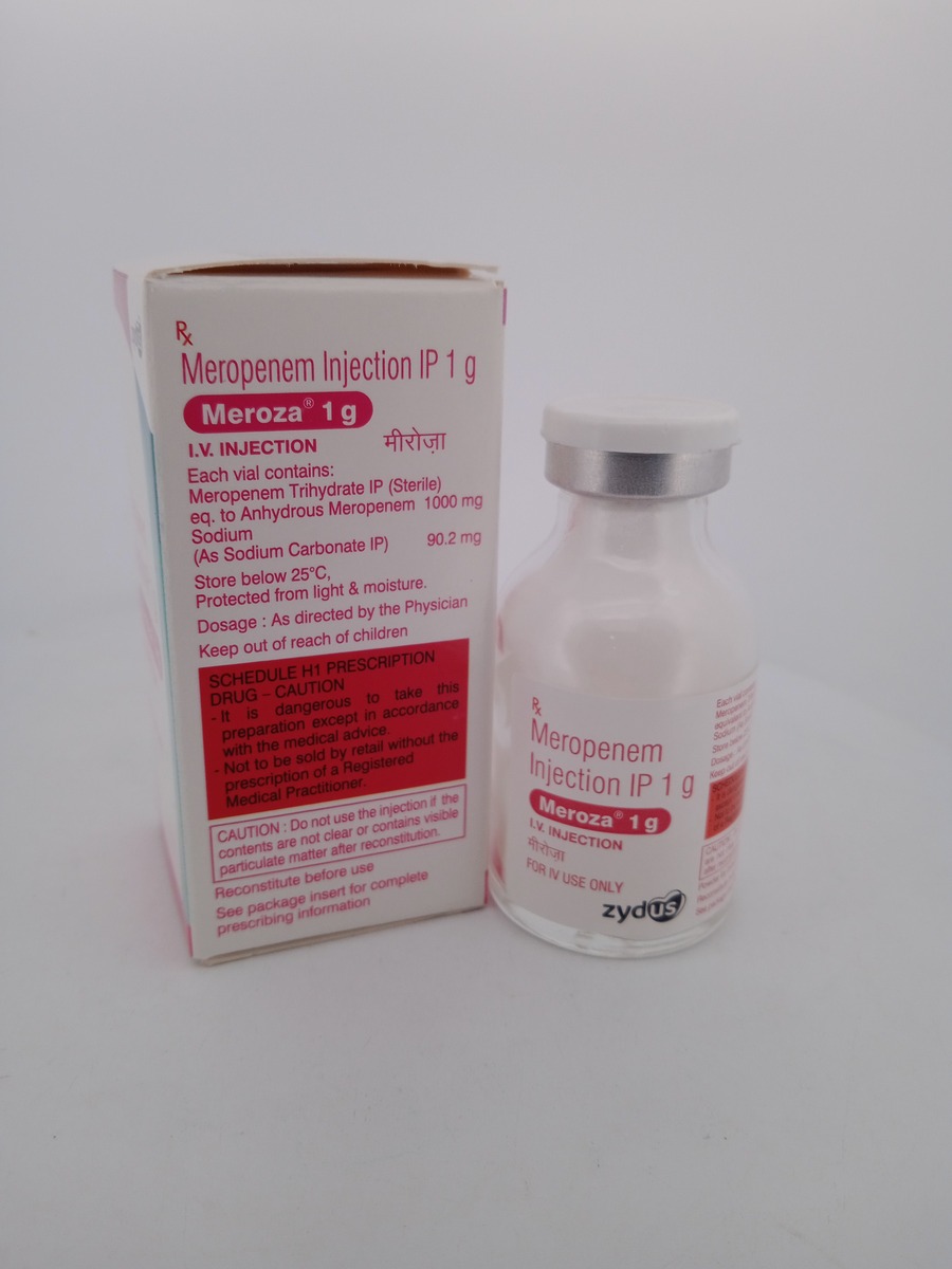 MEROZA 1g contains meropenem, a carbapenem antibiotic known for its broad-spectrum efficacy against resistant bacterial strains. It is primarily used in hospital settings for the treatment of severe infections, including those affecting the lungs, abdomen, and bloodstream. By disrupting the bacterial cell wall synthesis, MEROZA effectively eliminates harmful bacteria, aiding in the recovery of patients with serious infections.