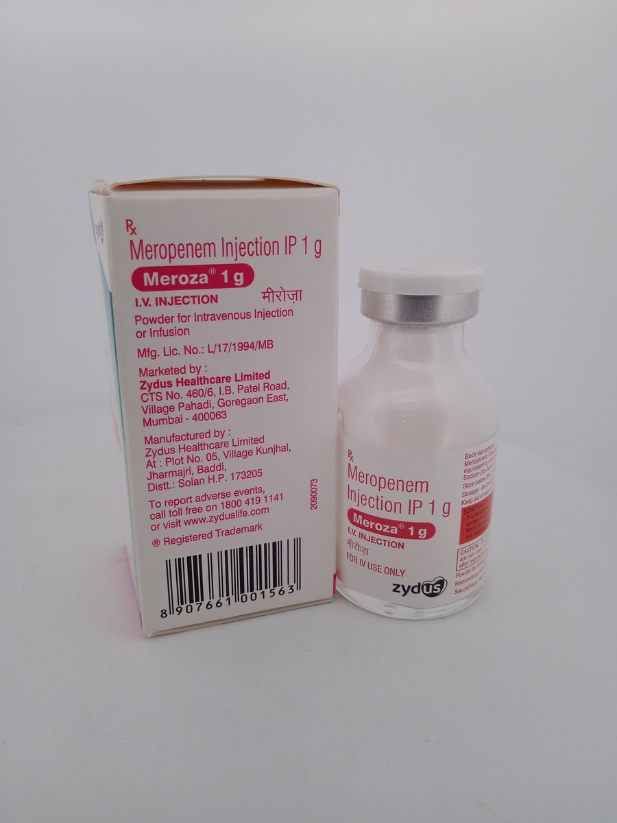 MEROZA 1g works by inhibiting bacterial cell wall synthesis, specifically targeting penicillin-binding proteins (PBPs). This action disrupts the integrity of the bacterial cell wall, leading to cell lysis and death, making it effective against a variety of pathogenic bacteria.