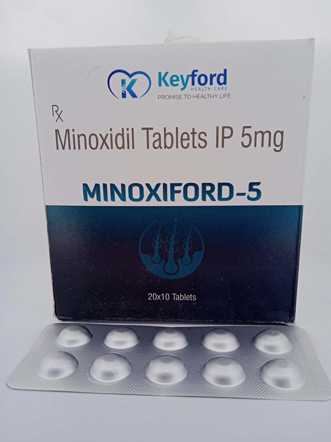 Minoxidil 5mg in MINOXIFORD 5MG dilates blood vessels in the scalp, enhancing blood circulation to hair follicles and promoting hair regrowth.
