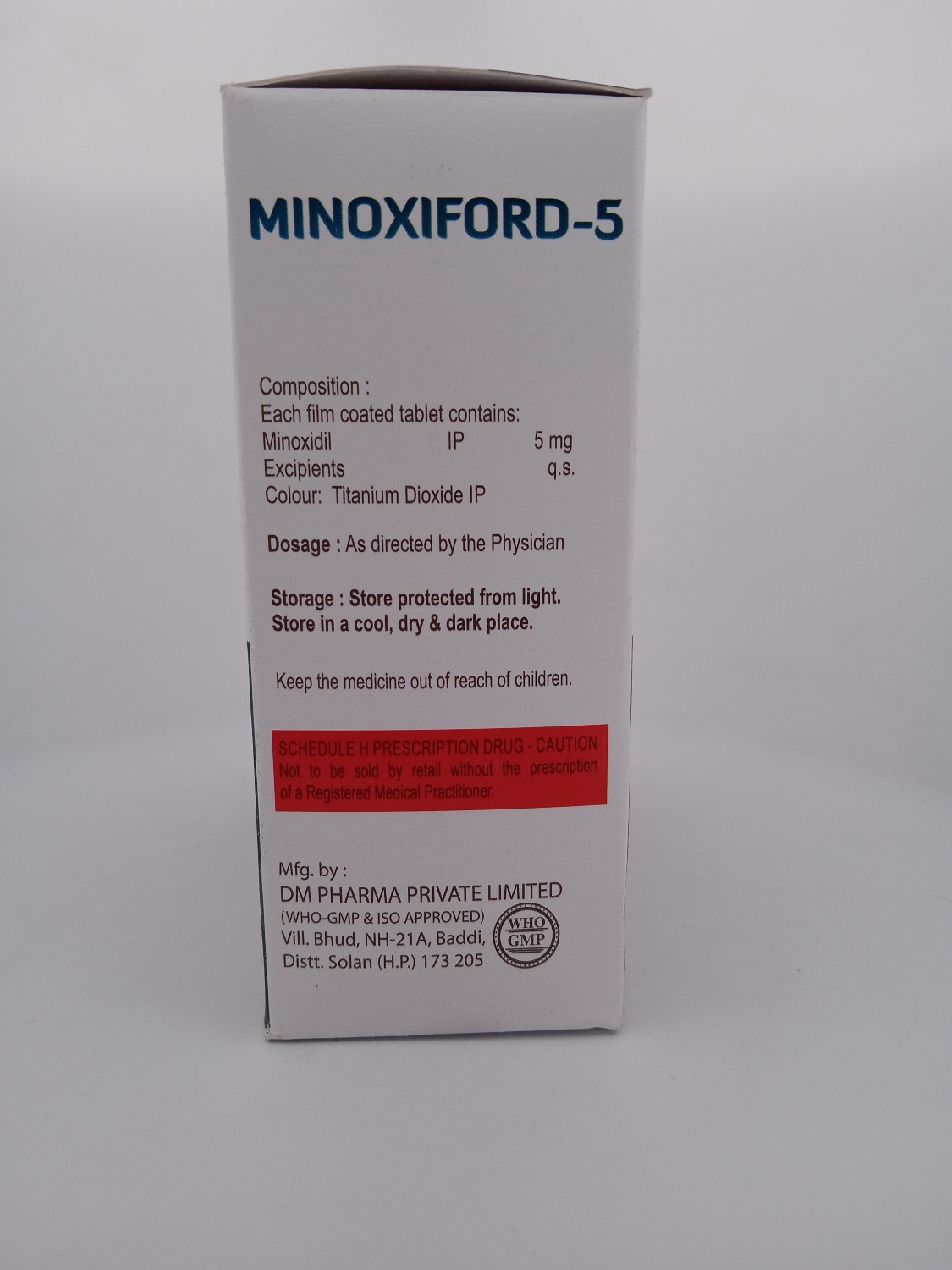 MINOXIFORD 5MG, containing Minoxidil 5mg, is a potent formula designed to revitalize hair growth. Its primary benefits include promoting thicker and stronger hair, addressing hair loss concerns effectively, and fostering confidence with a fuller hair appearance.
