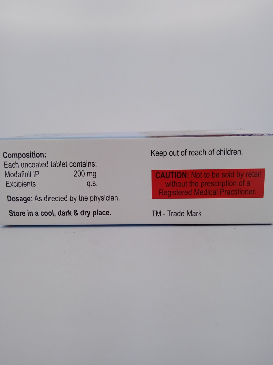 Usage Instructions: Take one tablet of MODAWAKE 200MG orally in the morning with or without food, or as directed by your healthcare provider. Avoid taking it late in the day to prevent sleep disturbances.