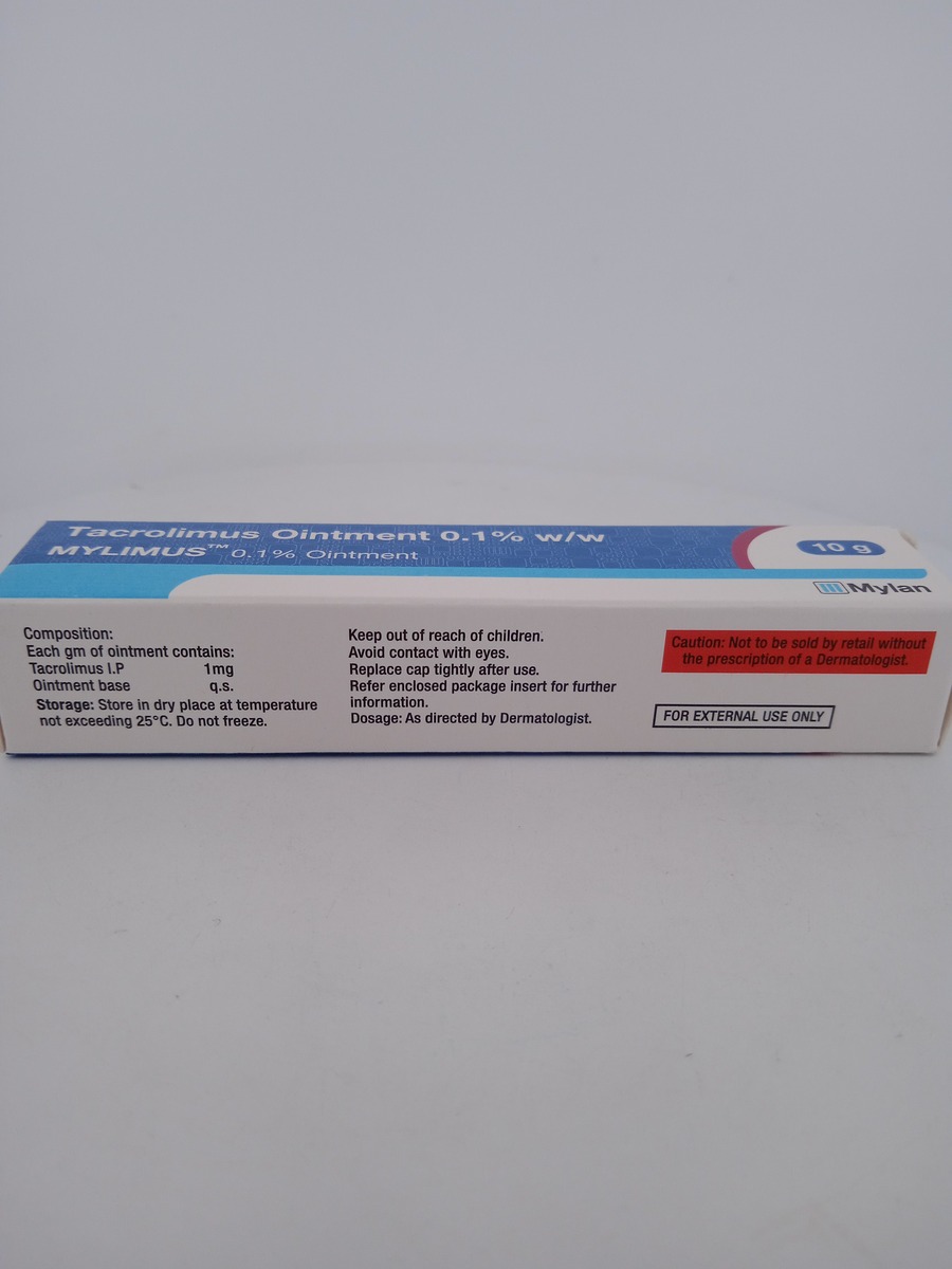 MYLIMUS 0.1% Ointment is specially formulated to treat inflammatory skin conditions such as eczema. It contains Tacrolimus, an immunosuppressant that reduces skin inflammation by blocking inflammatory chemicals in the body. MYLIMUS provides effective relief from itching, redness, and irritation, helping restore the skin’s natural barrier and preventing further flare-ups. It is suitable for long-term management of eczema and other inflammatory skin conditions, providing targeted relief without the side effects commonly associated with steroid-based creams.