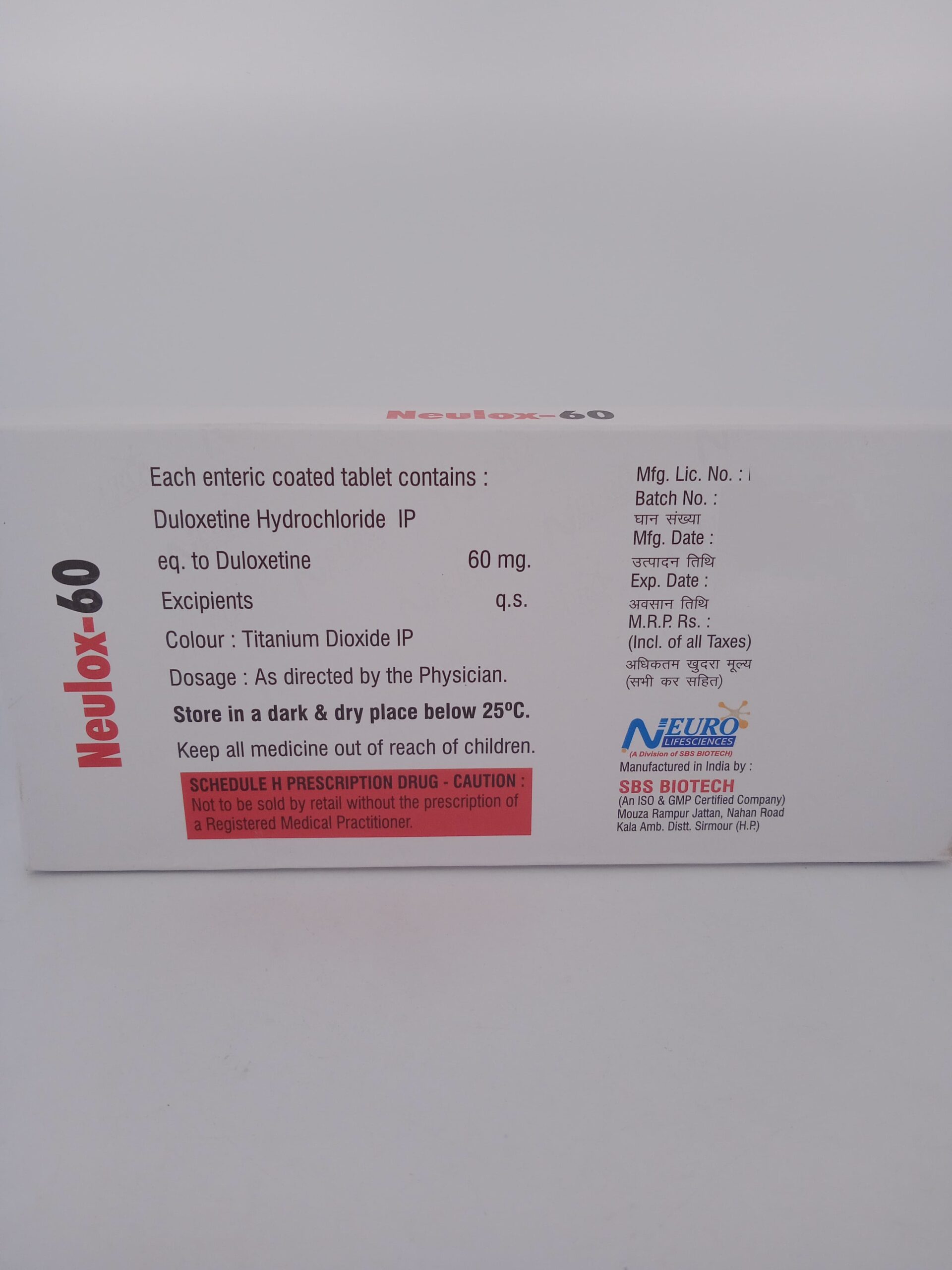 NEULOX 60 MG targets various conditions by modulating neurotransmitter levels in the brain and nervous system. It helps alleviate chronic pain associated with diabetes, fibromyalgia, and neuropathy while also addressing symptoms of depression and anxiety. Regular use can lead to significant improvements in quality of life.