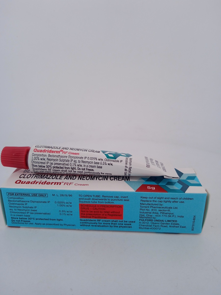 Off-Label Uses: Although QUADRIDERM RF CREAM is primarily used for treating skin infections and inflammation, it may be prescribed for other dermatological issues based on a healthcare provider’s judgment. Always consult with your healthcare provider before using it for off-label purposes to ensure it is appropriate for your condition.