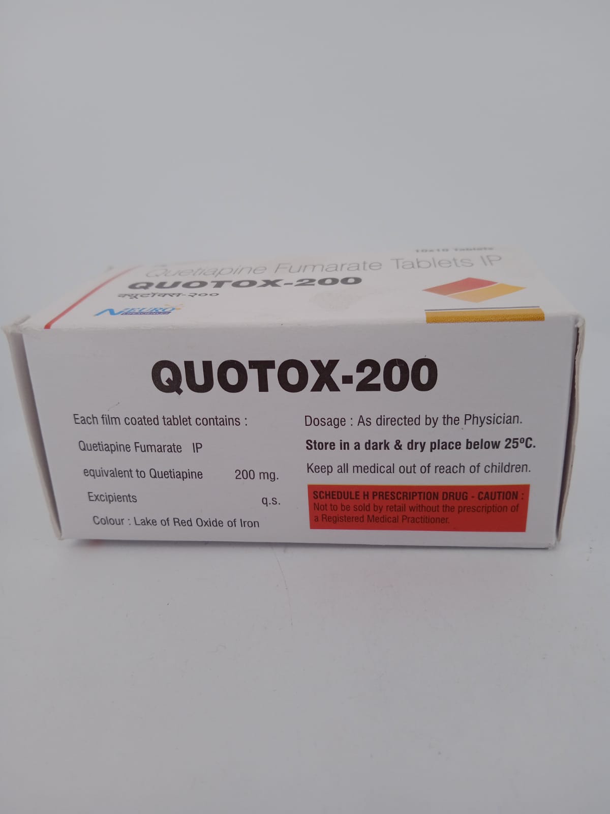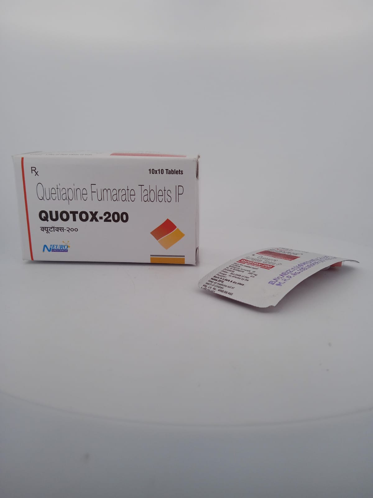 QUOTOX 200 MG works by modulating neurotransmitter levels in the brain, particularly serotonin and dopamine. This balance helps reduce the symptoms of mania and schizophrenia, providing relief from distressing thoughts and feelings.