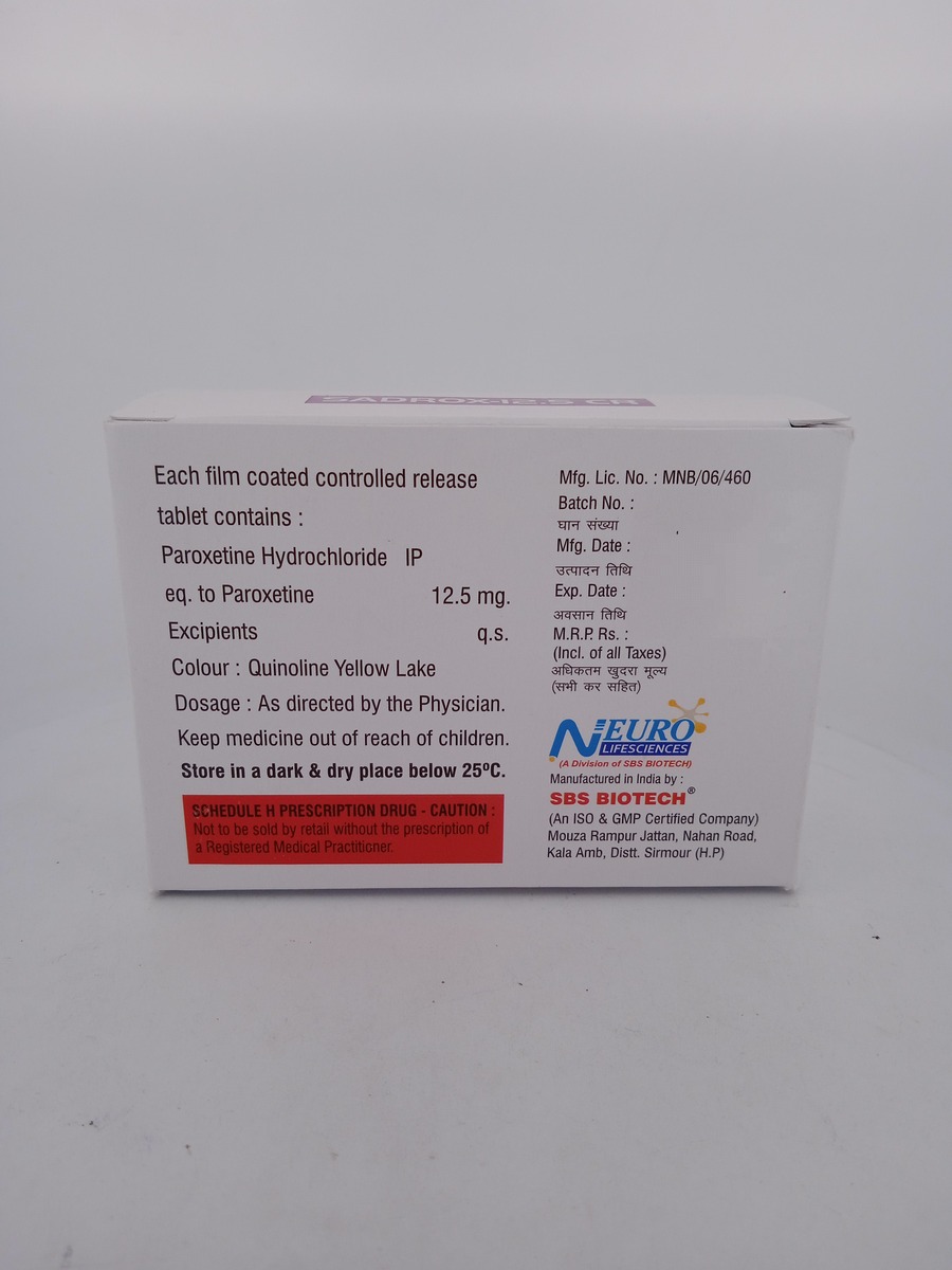 SADROX 12.5 CR effectively reduces symptoms of depression, panic disorder, and anxiety, enhancing overall mental health. Clinical studies support its efficacy in improving mood and reducing anxiety-related symptoms.