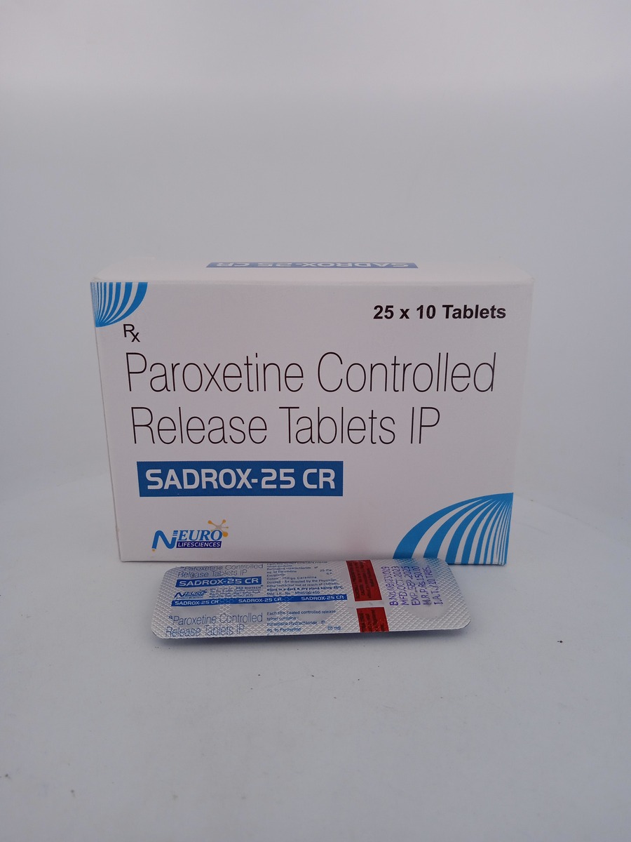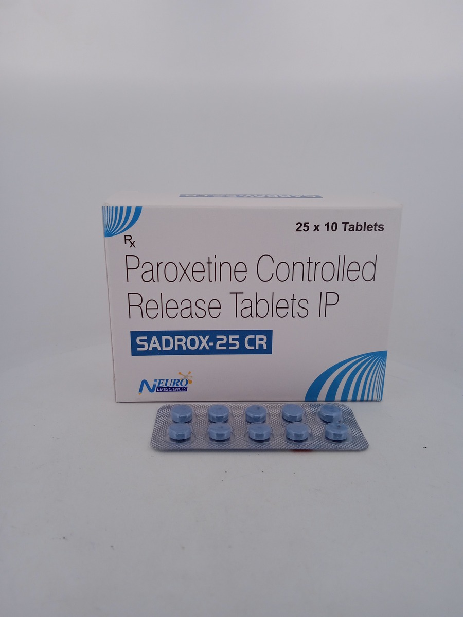 SADROX 25 CR is a controlled-release medication designed to treat depression, panic disorder, and anxiety disorders. Its formulation provides steady symptom relief, improving mood and emotional stability.