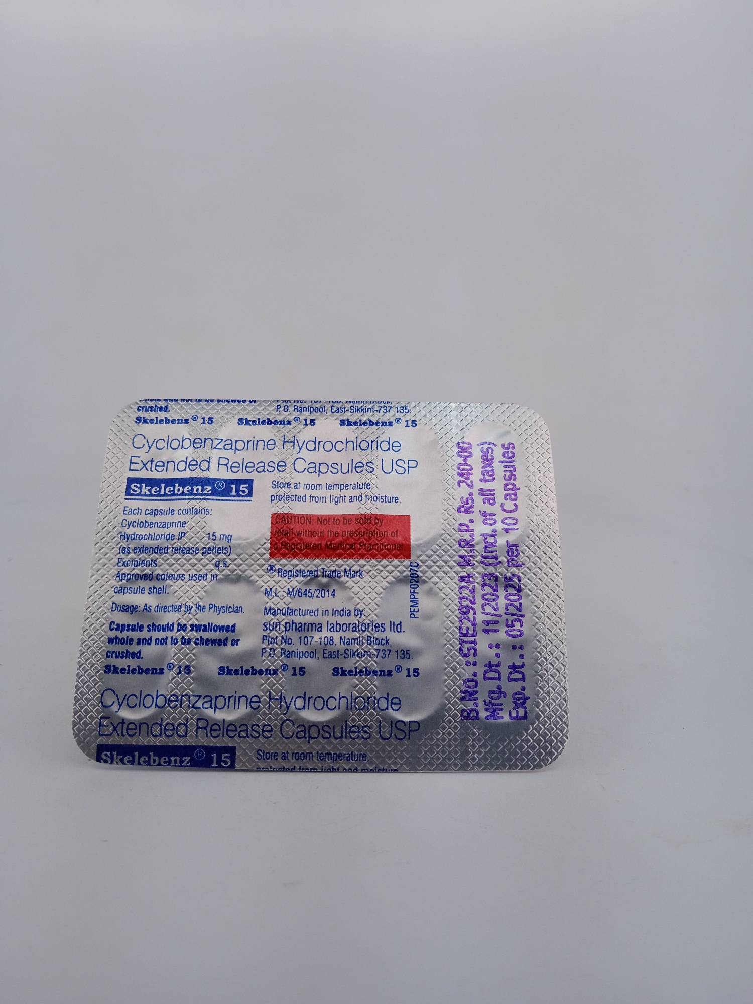 Usage Instructions: Take one Skelebenz 15mg tablet orally with water, preferably at bedtime, to minimize potential drowsiness. Do not crush or chew the capsules. Follow the dosage instructions provided by your healthcare provider for optimal results.
