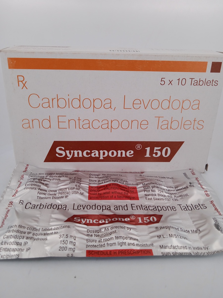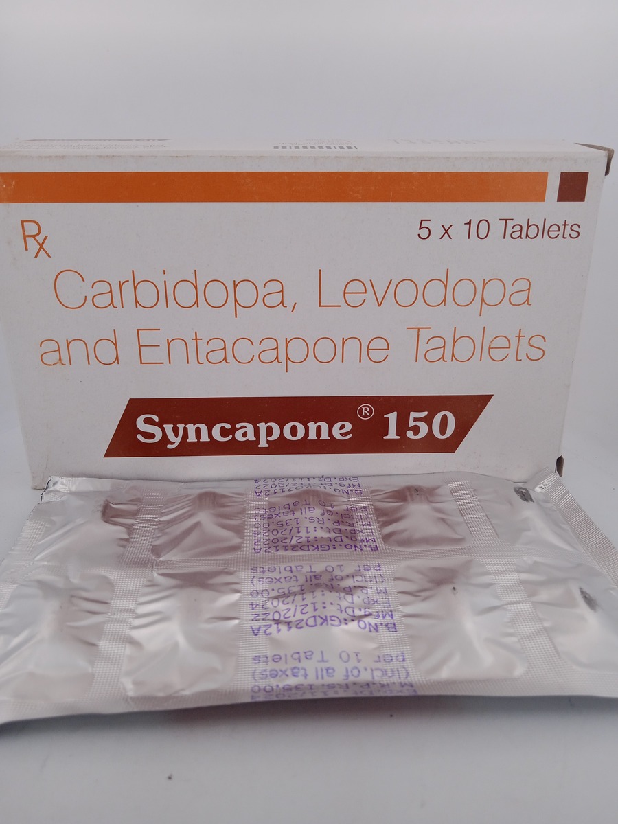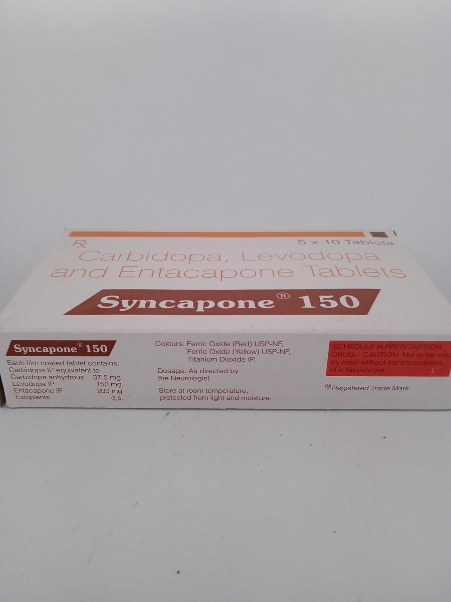 SYNCAPONE 150 works by combining levodopa and carbidopa. Levodopa is a precursor to dopamine, which replenishes the brain’s dopamine supply, addressing the deficiency seen in Parkinson’s disease. Carbidopa inhibits the conversion of levodopa into dopamine outside the brain, ensuring more levodopa reaches the brain and improves motor symptoms effectively.