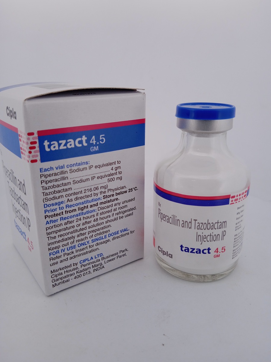 TAZACT 4.5 GM Injection is a combination antibiotic medication that provides powerful treatment for serious bacterial infections. The formulation includes 4.5 grams of Piperacillin, a broad-spectrum penicillin-class antibiotic, and 0.5 grams of Tazobactam, a beta-lactamase inhibitor that enhances Piperacillin’s efficacy. This combination effectively targets a variety of resistant bacterial strains, making it a crucial option for severe infections.