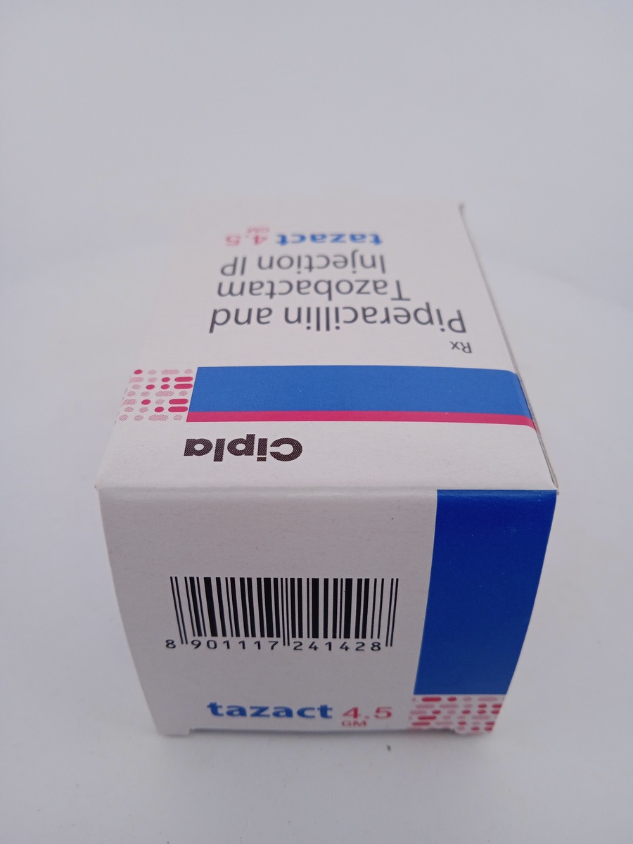 TAZACT 4.5 GM Injection works through a combination of two active ingredients. Piperacillin disrupts bacterial cell wall synthesis, leading to cell lysis and death. Tazobactam inhibits beta-lactamase enzymes produced by bacteria that would otherwise degrade Piperacillin, thereby enhancing its antimicrobial activity and broadening its effectiveness against resistant strains.