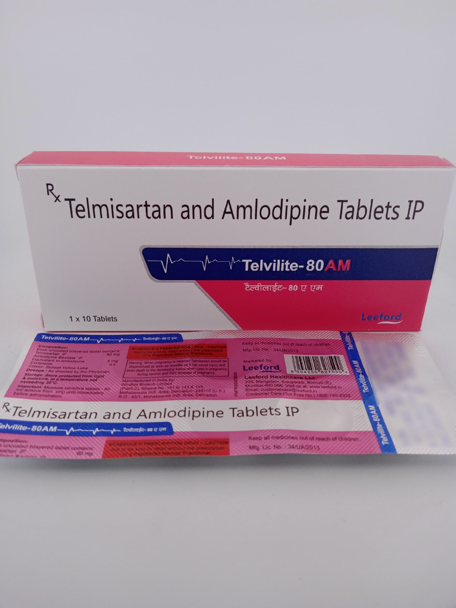 TELVILITE-80 AM contains a combination of Telmisartan and Amlodipine, two powerful agents for managing hypertension and cardiovascular health. Telmisartan is an angiotensin II receptor blocker (ARB) that helps relax blood vessels and lower blood pressure. Amlodipine is a calcium channel blocker that prevents the contraction of blood vessel muscles, further aiding in the reduction of blood pressure and improvement of heart function. Together, they provide a comprehensive approach to managing hypertension and supporting heart health.