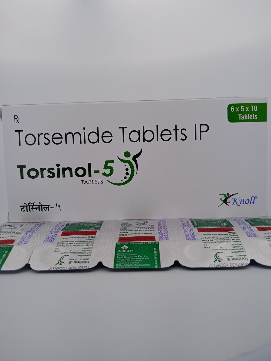 TORSINOL 5 MG (TORSEMIDE 5MG) tablets are potent diuretics used to treat edema and heart failure. They help reduce fluid retention and improve symptoms for better quality of life.