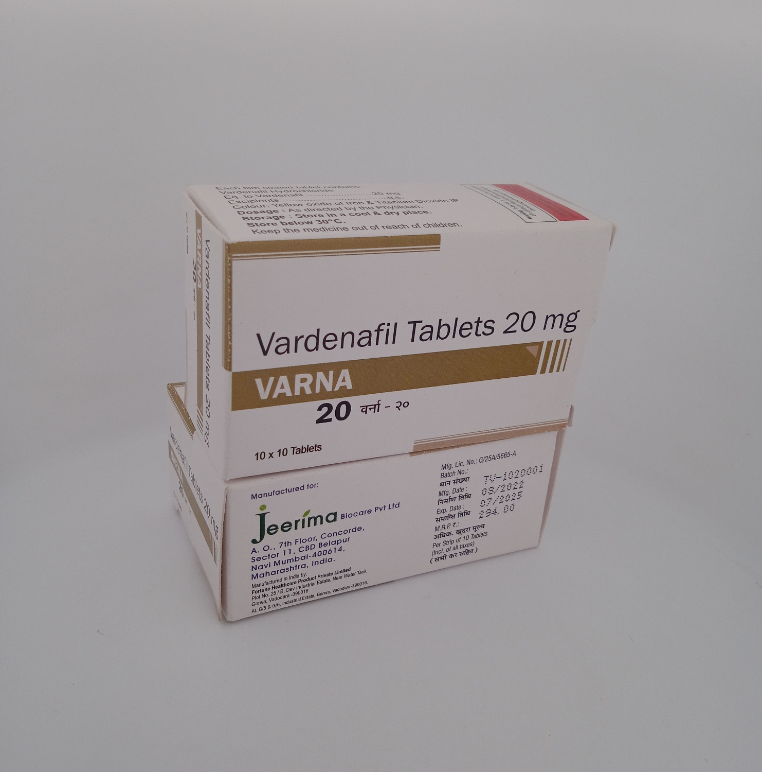Storage Conditions: Store Varna 20 mg in its original packaging at room temperature, away from moisture and heat. Keep it out of reach of children and pets. Do not freeze or refrigerate.