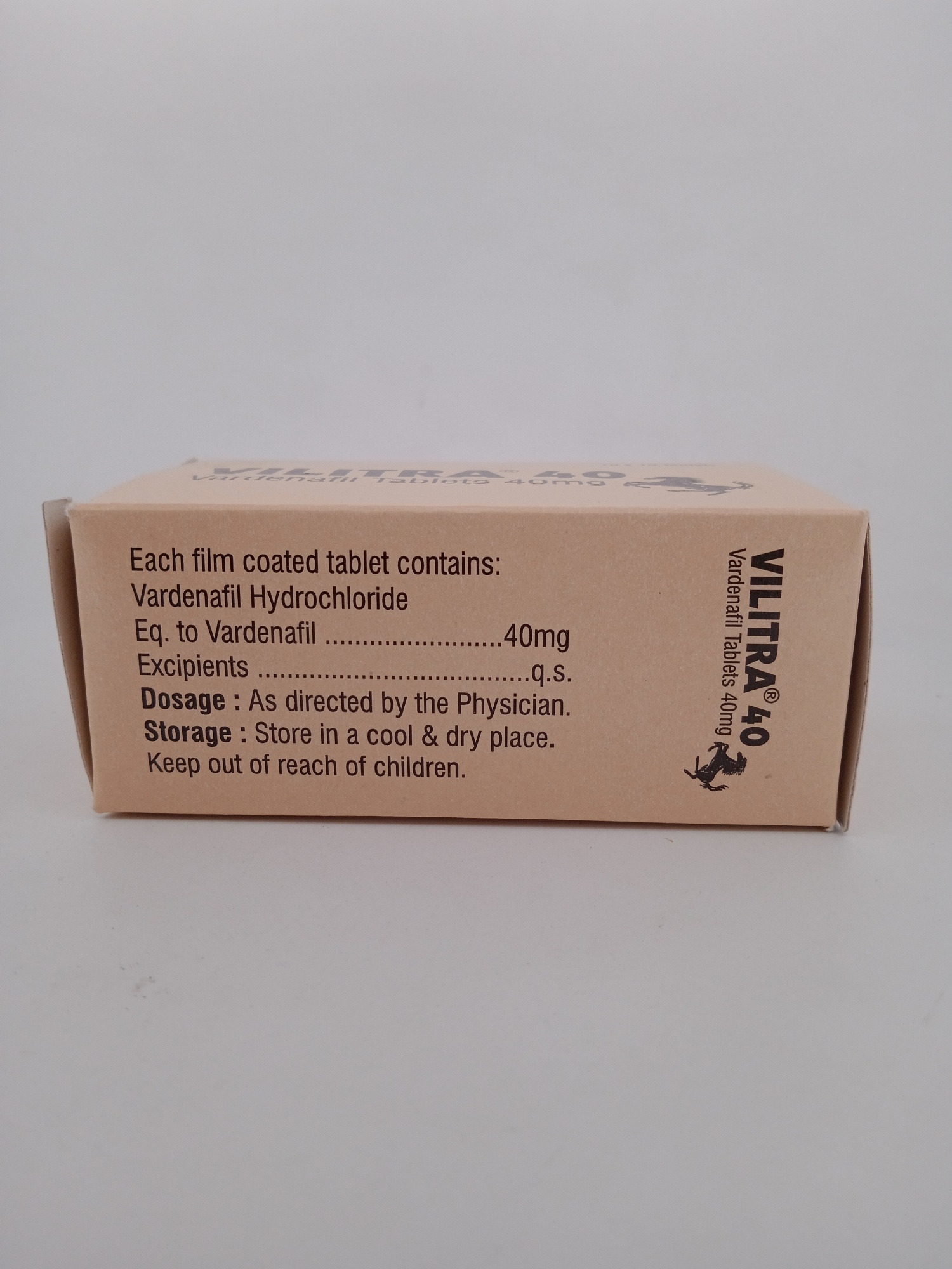 Storage Conditions: Store Vilitra 40 mg Tablet in a cool, dry place away from direct sunlight and moisture. Keep it out of reach of children and pets.