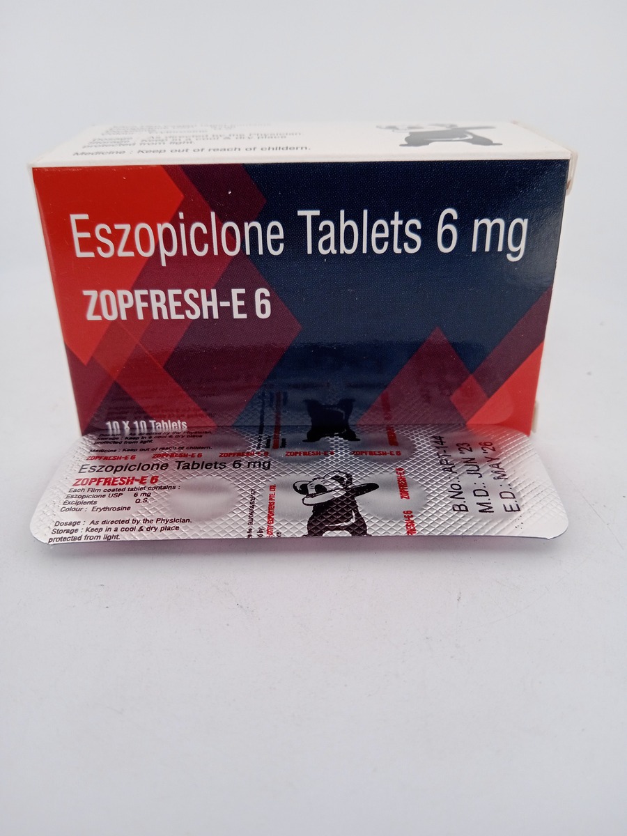 Mechanism of Action: Eszopiclone in Zopfresh 6mg belongs to the class of medications known as non-benzodiazepine hypnotics. It works by binding to the GABA receptors in the brain, enhancing the inhibitory effects of GABA neurotransmitters. This results in sedation, relaxation of muscles, and induction of sleep, providing relief from insomnia.