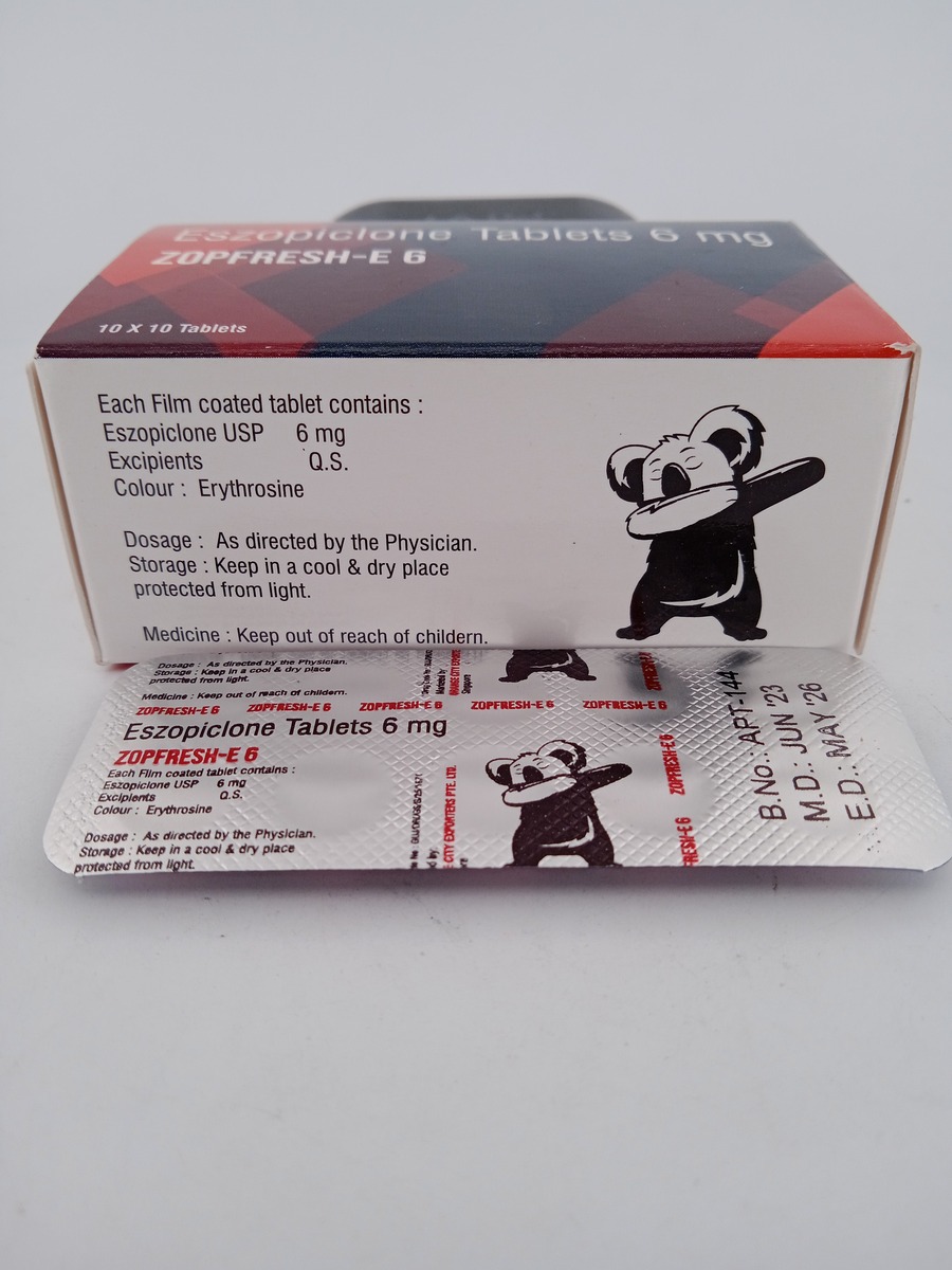 Zopfresh 6mg is a potent solution for insomnia, containing Eszopiclone 6mg. These tablets offer a reliable remedy for sleeplessness, ensuring deep, restful sleep and promoting overall well-being.